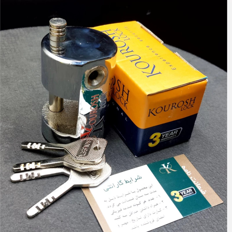 قفل استوانه سایز 75 کوروش بدنه تمام 👌فولادی مغزی دیسکی جنس مغزی برنجی نوع کلیدها 🔑سولکسی تعداد کلیدها🔑 چهار عدد ضمانت سه ساله بدنه مقاوم 💪 مغزی فوق العاده ایمن💯 سیستم ساچمه ریزی بصورت دیسکی میباشد که در این روش مغزی فوق العاده امنیت بالایی دارد آبکاری نیکل کروم فوق العاده با کیفیت🎗 قطرقفل پنجاه میلیمتر طول قفل هفتاد و پنج میلیمتر و دهانه قفل سی میلیمتر ضخامت میله دوازده میلیمتر