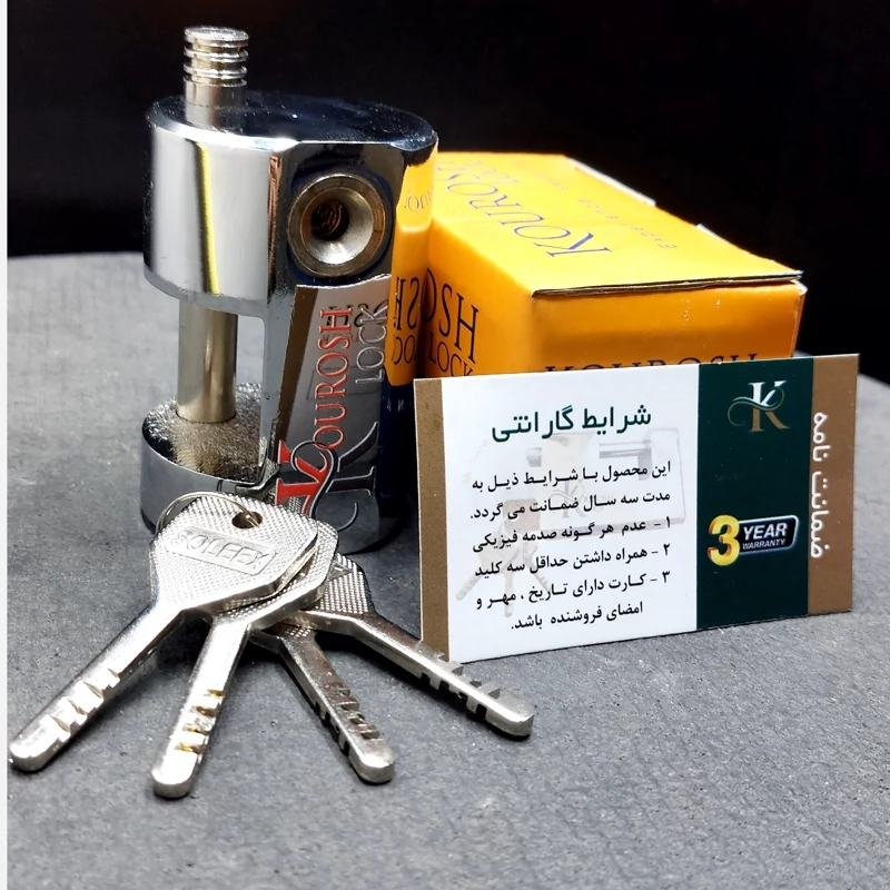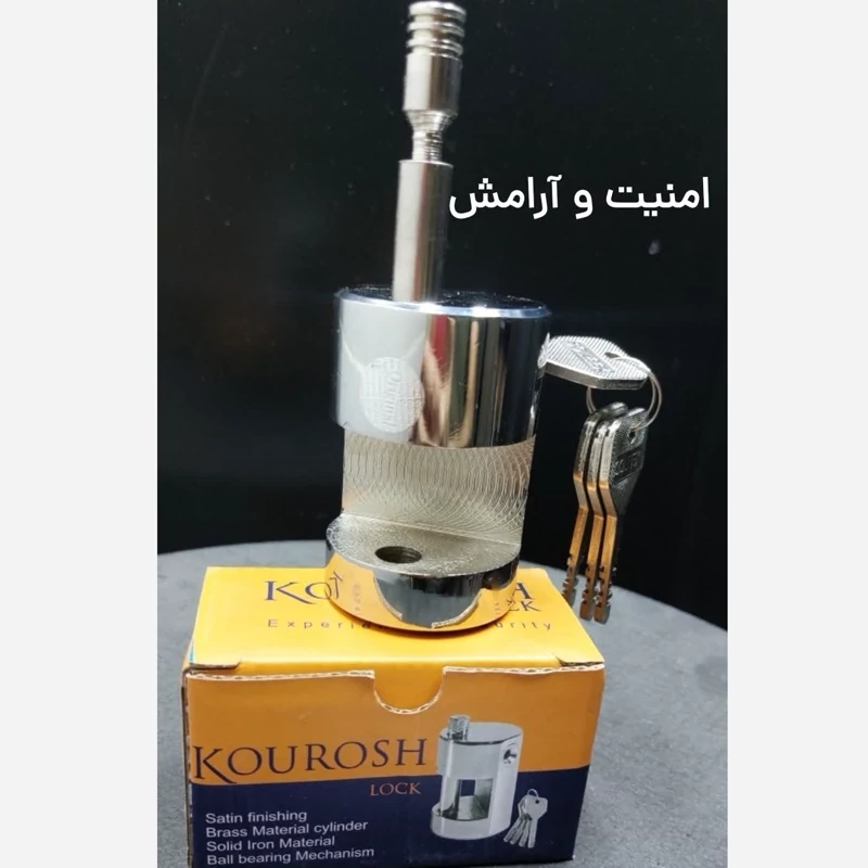 قفل استوانه سایز 75 کوروش بدنه تمام 👌فولادی مغزی دیسکی جنس مغزی برنجی نوع کلیدها 🔑سولکسی تعداد کلیدها🔑 چهار عدد ضمانت سه ساله بدنه مقاوم 💪 مغزی فوق العاده ایمن💯 سیستم ساچمه ریزی بصورت دیسکی میباشد که در این روش مغزی فوق العاده امنیت بالایی دارد آبکاری نیکل کروم فوق العاده با کیفیت🎗 قطرقفل پنجاه میلیمتر طول قفل هفتاد و پنج میلیمتر و دهانه قفل سی میلیمتر ضخامت میله دوازده میلیمتر
