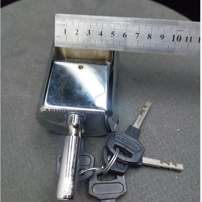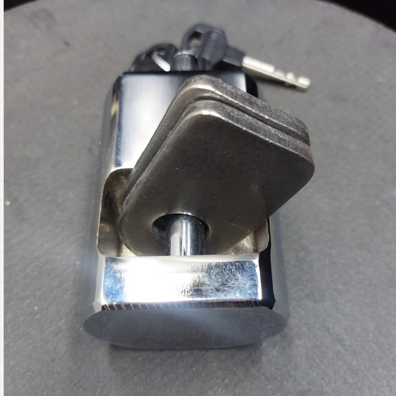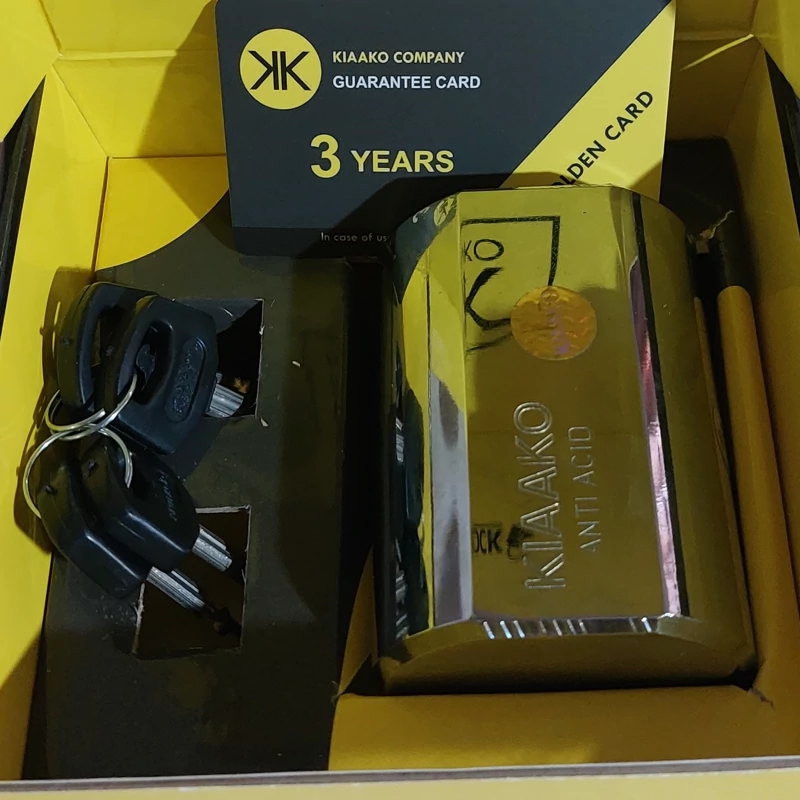 قفل پشت بسته ی کیاکو بدنه فولادی، ضد برش ، ضد اسید ، ضد سرقت، تعداد کلیدها چهار عدد، نوع مغزی دیسکی، جنس مغزی و کلیدها از برنج،